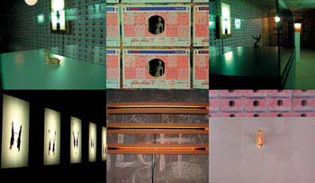 "Du darfst essen von allen Baumen im Garten, aber von dem Baum der Erkenntnis des Guten und Bosen sollst Du nicht essen; denn an dem Tage, da du von ihm issest, musst du des Todes sterben." "Jede Eroberung wird mit einer Vertreibung bezahlt und die Inbesitznahme mit einem Verlust." J.-B. Pontalis Unter diesem Motto setzt die Rauminstallation zahlreiche Aspekte der Kulturgeschichte des Paradieses zueinander in Beziehung. Die Lottoscheine sind kauflich. Die Buchstabenwerte der angekreuzten Zahlen bilden das Wort "Paradies". Die Abbildung auf der Hostie zeigt Gottes Zufuhrung Evas an Adam aus Hieronymus Boschs Paradies-Tryptychon. "Und ich will Feindschaft setzen zwischen dir und dem Weibe und zwischen deinem Nachkommen und ihrem Nachkommen; der soll dir den Kopf zertreten, und du wirst ihm in die Ferse stechen."