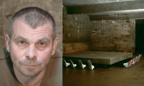 In der Mitte des Ausstellungsraumes liegt eine Betonplatte (2x2 Meter, Höhe